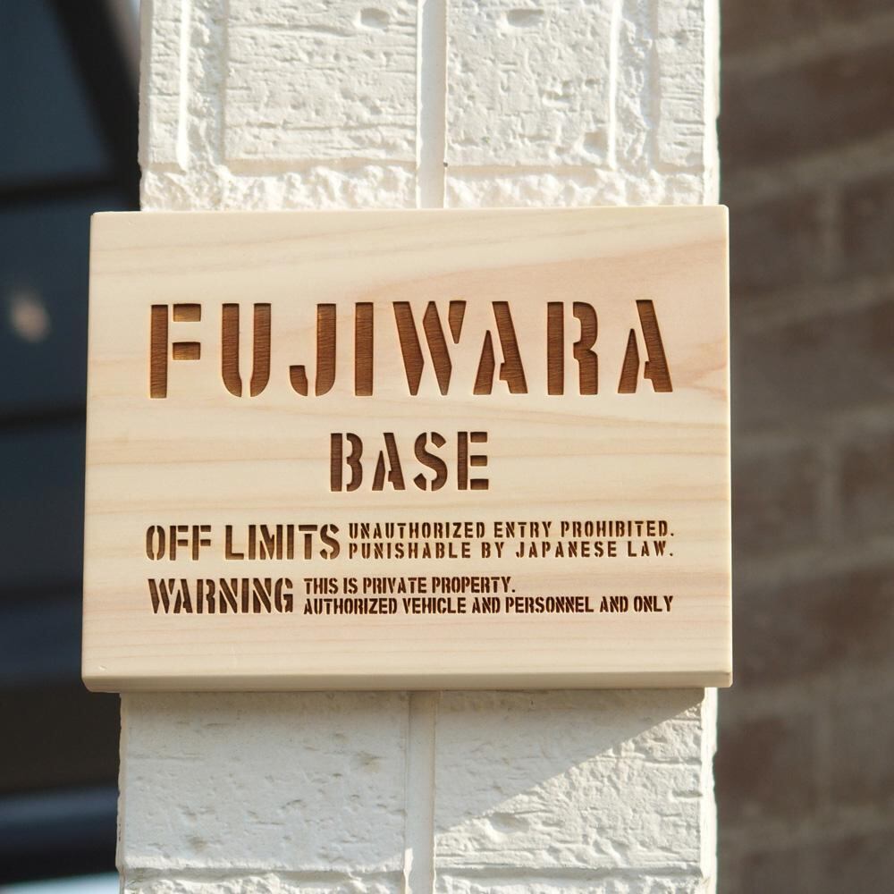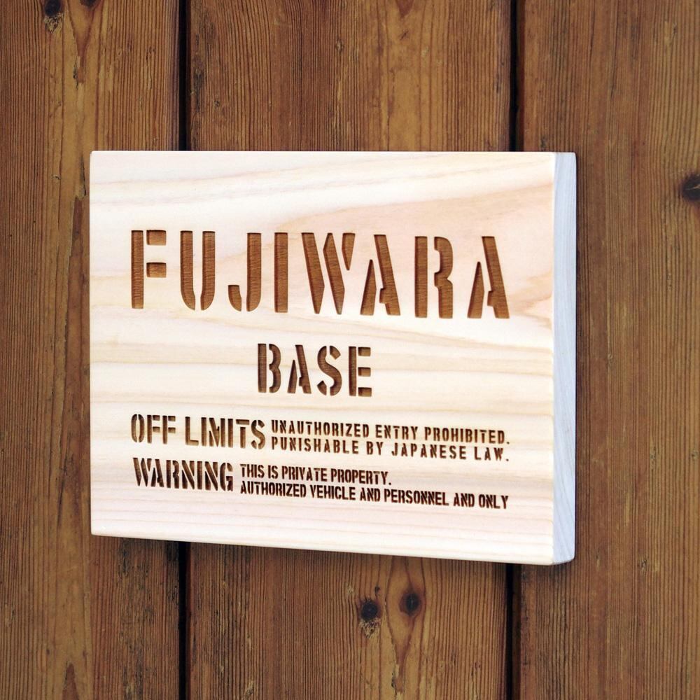 米軍基地 関係者以外立ち入り禁止風の看板をモチーフにした世田谷ベースをさらにモチーフにしています。