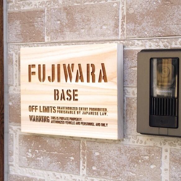 オーダーメイド 表札 看板 Mサイズ 木製 ウッド ステンシル ミリタリー調 レリーフ 20cm × 15cm ヒノキ